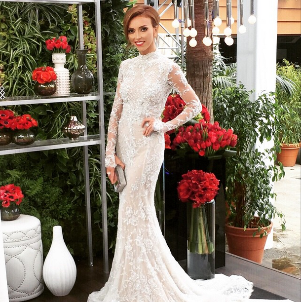 The pretty ladies just stepped out in their first outfits for the night as Juliana stuns in a silver coloured Steven Khalil dinner gown, Giuseppe Zanotti shoes and a sliver clutch purse by Rauwolf.