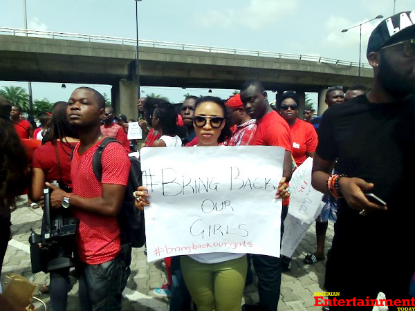 Nollywood Actress Tonto Dikeh was among prominent faces spotted at the #BringBackOurGirls protest held on the morning of May 10, 2014 at Ikoyi, Lagos.