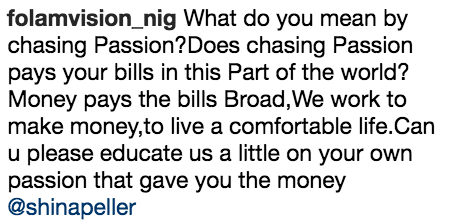 When shina peller said “Stop chasing the money and start chasing the passion” it sounds like rubbish to me…wetin we go use pay for quilox?