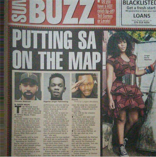 Patrick Nnaemeka might just a young Nigerian for many but leading South Africa daily newspaper, Sun Buzz Newspaper has featured the rising dancehall star, who is better known as Patoranking on the cover of it’s Thursday, November 20, 2014 edition.