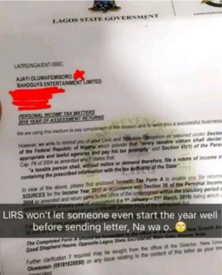 The musician shared an image of the letter of on his social media account. The letter, which was sent to the musician from Lagos State Internal Revenue Service (LIRS), is a notice to the ‘Falz Experience’ host to come and pay his 2017 income tax.
