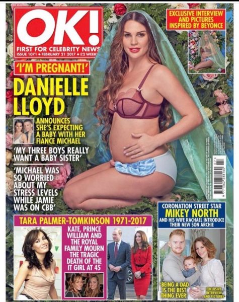 British model, Danielle Lloyd recently announced that she’s pregnant with her fourth child with the release of an OK Magazine cover that is completely identical with Beyonce‘s pregnancy announcement photo.