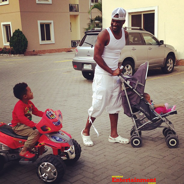 Daddy got his kids Cameron and Aliona in their mini-trucks (Aliona settled for her cart) and jumped into one himself. These photos were taken a few days before he along with his twin brother Paul Okoye and band members traveled to the US for their tour.