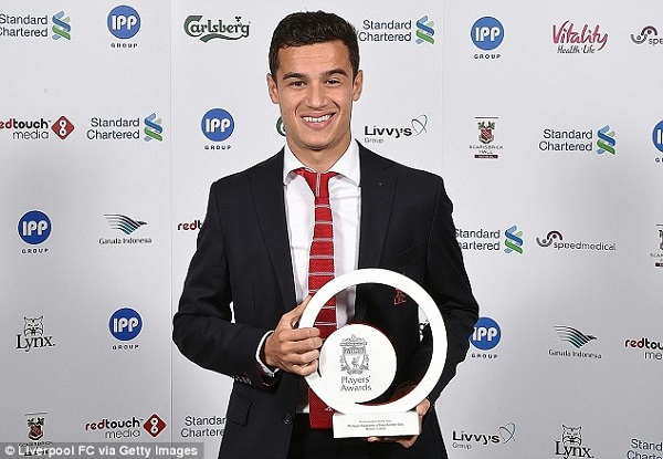 Brazil international, Philippe Coutinho has been named the ‘Player of The Year’ at Liverpool‘s end of season gig which took place on Tuesday, May 19, 2015 at the ECHO Arena.