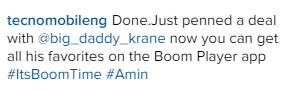 Hypertek act, Dammy Krane has just inked a deal with mobile phone company, Tecno. The new deal, which runs into millions of Naira, will make Dammy Krane’s songs available for downloads on the new mobile app, ‘Boom‘ recently launched by Tecno.