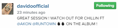 But it’s now official, Davido just confirmed a collabo with Akon on his forthcoming second album. The song is titled ‘Chilling‘ and it also features rising star, Runtown.