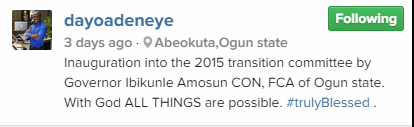 Entertainment mogul, Dayo Adeneye lost out at the APC primaries in his bid to become a member of the Ogun State House of Assembly representing Odogbolu Constituency but he has now been appointed as a member of the 2015 Inauguration Committee of Ogun State.