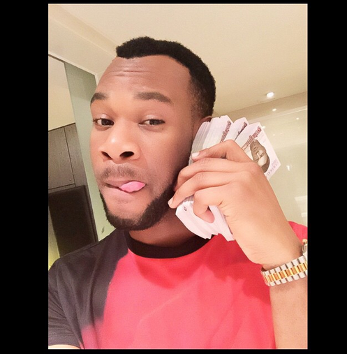 The singer, who recently dropped his latest tune titled ‘Oga Titus,’ shared a picture of himself showing off with the money and captioned: ‘Abeg no be show off o. I just dey receive call’.