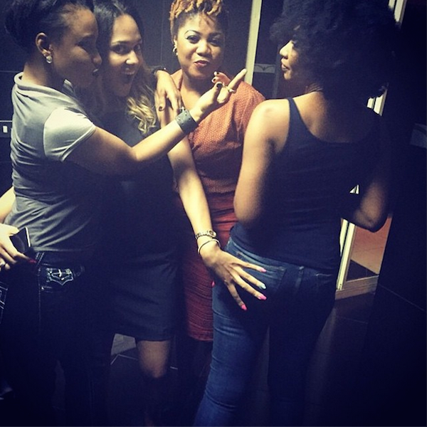 It was a ladies night out somewhere recently which had the married actress along with the likes of Tonto Dikeh, Tania Omotayo and Moji Adewale and others in attendance, all hanging out somewhere and Tania probably couldn’t resist the urge to have a feel of Nse’s butt.