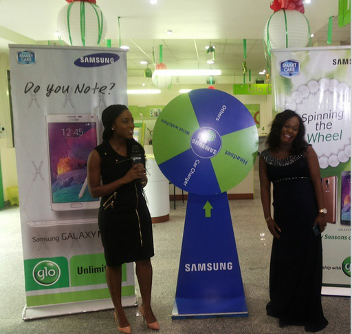 She’s pictured with fellow Glo ambassador and gospel music act, Sammie Okposo.