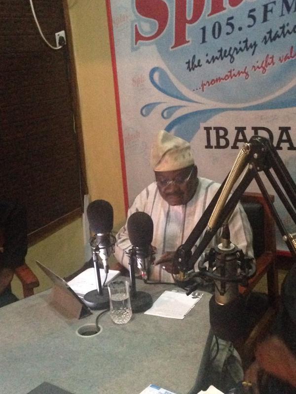 Here are photos of Abiola Ajimobi, the Governor of Oyo State and the 2015 APC Gubernatorial candidate live on air. The photos were taken during his visit to Splash 105.5 FM located in Ibadan, Nigeria, today, Thursday, April 9, 2015.