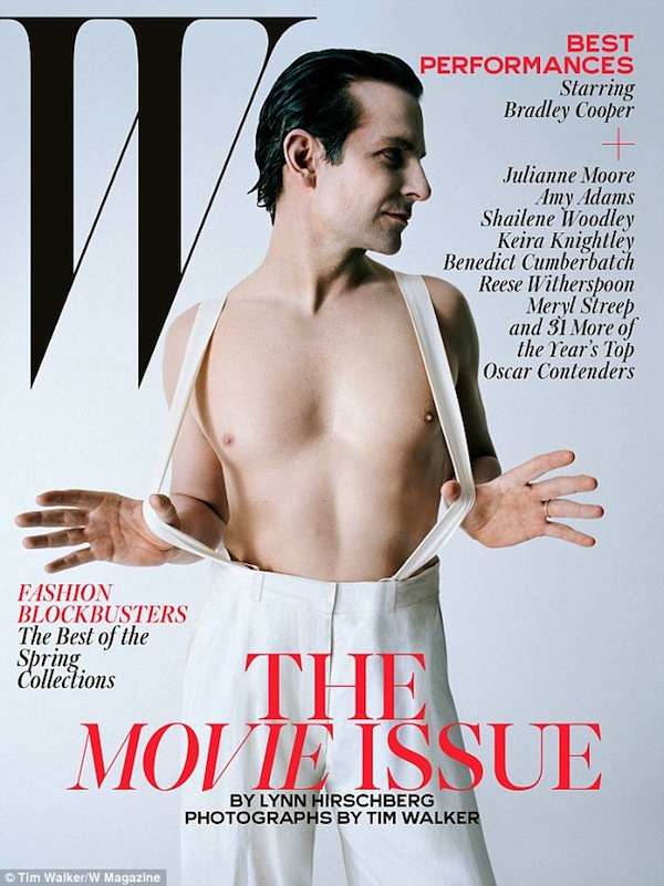 Bradley Cooper poses nude on the front cover of W Magazine’s February issue.