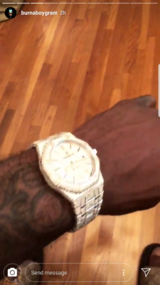 To celebrate his current run of successes, Burna took to his Instagram page, showing how he rewarded himself with a new diamond-encrusted Audemars Piguet wristwatch which is valued at Sixty-five thousand dollars, (Twenty-three million five hundred and twenty-eight thousand seven hundred Naira only).