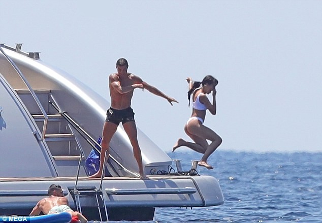 The 33-year-old Juventus star was pictured playfully throwing his bikini-clad girlfriend, 24, into the sea, as they frolicked together in the sunshine.