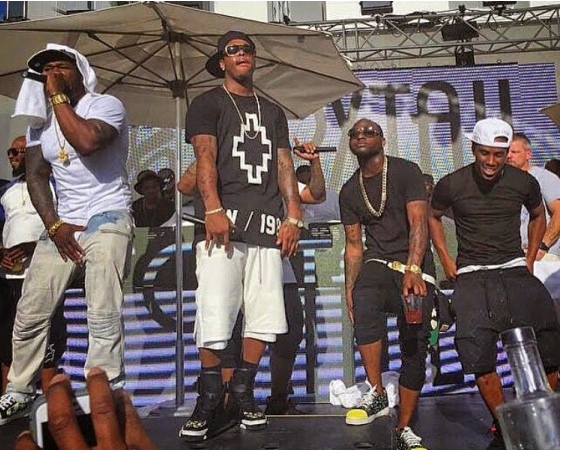 The pool party had top American celebrities like Nicki Minaj, Yung Buck, Common, 50 Cent, Dj mustard, Jeremih and others in attendance, while Davido was in company of B-red, his elder brother Chairman and video director, Sesan Ogunro.