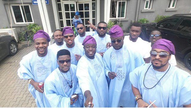 Gbenro’s celebrity groomsmen just stepped out in their first outfit for the day, a blue Agbada and purple cap. His groomsmen include Bryan Okwara, Mc Shakara, Elenu, Melvin Oduah, Yomi Casual, Kenneth Okolie, Emmanuel Ikubese and others.