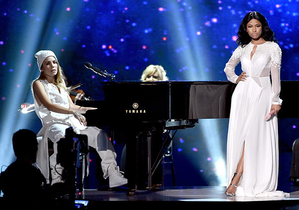Performers at the ceremony included the evening’s host Pitbull, Lorde, Iggy Azalea, Nicki Minaj and Jennifer Lopez, Selena Gomez – who wept as she sang ‘The Heart Wants What It Wants’ – and Fergie.