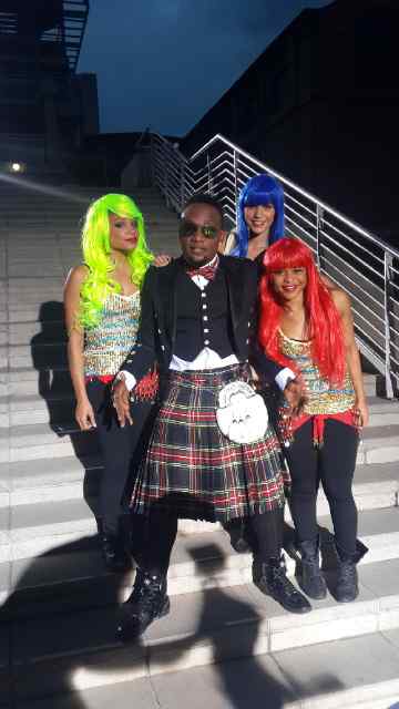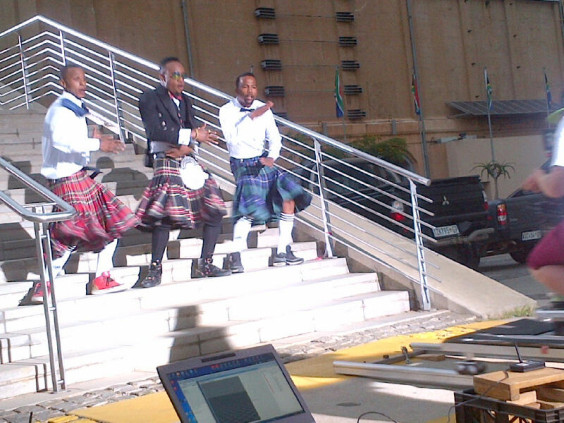 On the set of his new video in South Africa, still photos show the ‘Pull Over’ singer dressed in a Scottish kilt, alongside two other male dancers.