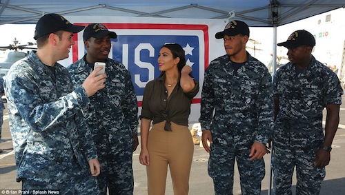 The 34-year-old reality star was delighted to meet the servicemen and women working on the USS San Diego during her trip to Abu Dhabi in November.
