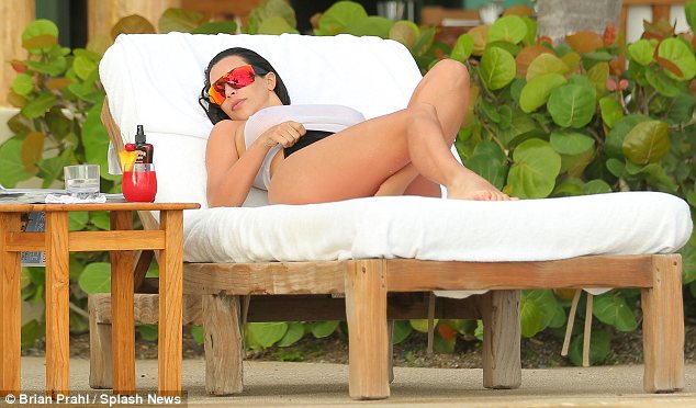 The ‘Keeping up with the Kardashians‘ star, during her second honeymoon with Kanye West, was on display for the camera as she sunbathed. She flaunted her curves, showing off her famous backside, wearing a high-cut bikini bottom and earlier, a see-through white tank top.