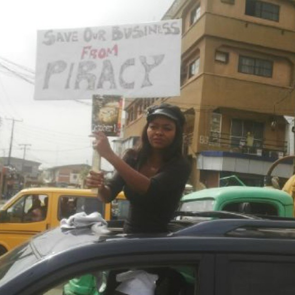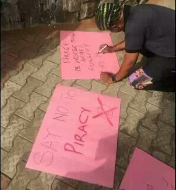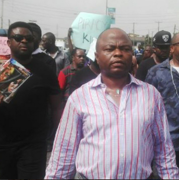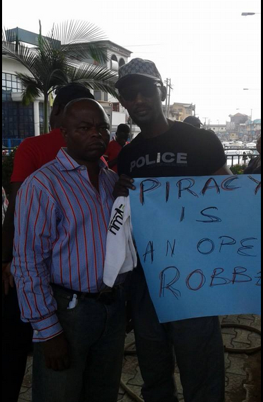 Led by Yemi Sodimu, Kunle Afolayan and others, nollywood stars began the anti-piracy march at Ikeja under bridge and they marched through Alausa and Ikeja environs to register their displeasure.
