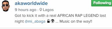 When two of Africa’s finest rappers link up in the studio, you can only expect magic. So in the coming weeks, magic is what we expect from the collaboration between Chocolate City rapper, M.I Abaga and South Africa’s AKA.