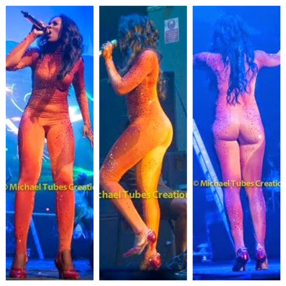 Tiwa Savage wore this orange cat suit to perform at the Africa Unplugged show held on Sunday, September 14, 2014 at the 02 Brixton Academy, London.