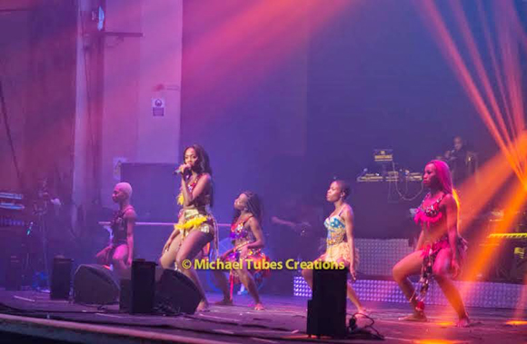 In the course of her 1-hour performance, the Mavin star wore three different outfits including a fitted tuxedo jacket with a pair of black pants and a multi-coloured bra top and shorts.