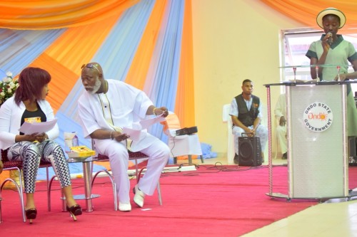Held inside the St. James Caring Heart Mega School, Akure, students, teachers and parents filled the hall to catch a glimpse of the Nollywood stars and the First Lady, Mrs Kemi Mimiko who partook in the reading session with the stars and select students. The book of choice was the bestselling Half of A Yellow Sun authored by Chimamanda Ngozi-Adichie.