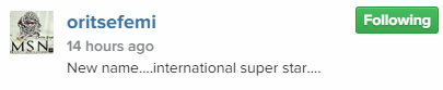 The singer got the new ink which reads, ‘International star’. Oritsefemi also unveiled his new name as ‘International super star’.