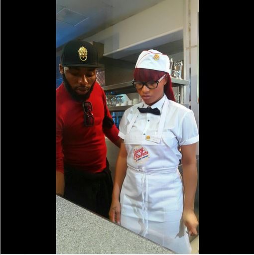 Directed by Moe Musa, with Jeremiah Ogbodo of Swanky’s Signatures styling her different looks, the first lady of DB Records is pictured on set with her label CEO, D’Banj in a very sexy black outfit that is sure to make tongues wag.