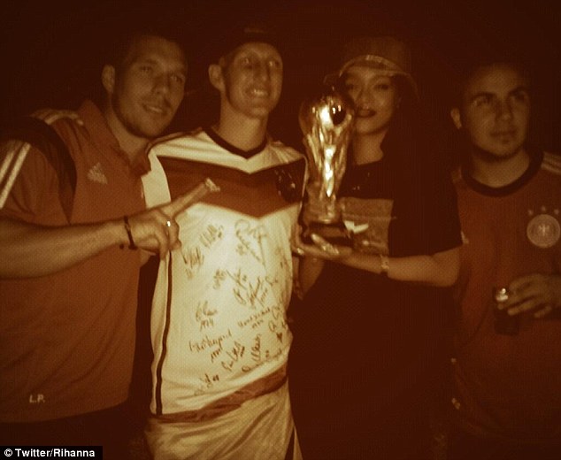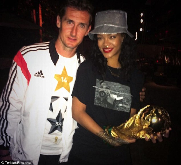 The Bajan Pop star posted pictures of herself with World Cup winners – German footballers Miroslav Klose, Lucas Podolski and Bastian Schweinsteiger, holding the coveted World Cup trophy. But FIFA guidelines have previously stated that only winners of the tournament and heads of state are allowed to handle the trophy.