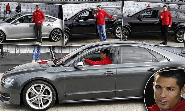 The event, which took place on Monday, December 1, 2014 at Real Madrid‘s Training complex, saw superstar, Cristiano Ronaldo receiving a brand new Audi S8, the fastest model available to the players while Welshman Gareth Bale opted for the Q7 model.