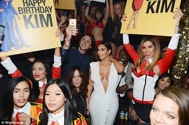 Kim, who wore a slinky, cleavage and back-baring dress to the event which she celebrated on Friday, October 24, 2014 at the posh Venetian Hotel and Casino’s TAO nightclub in Las Vegas.