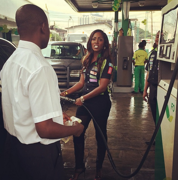 As part of her activities as an ambassador for Forte Oil, singer Tiwa Savage has been up an about Lagos working as pump attendant at the company’s stations in the last few days.