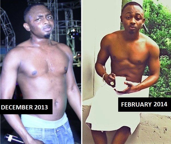 In December 2013, the Pop singer took off his shirt at the Star Lagos Countdown gig showing off a rotund pot belly. A few weeks later he’s pictured spotting a much trimmed down look.