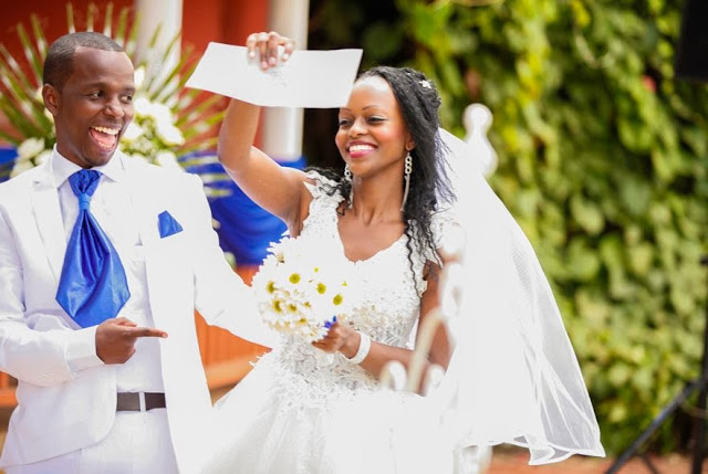 Kenyan TV presenter, Tim Njiru and his bride, Pamela Gatwiri had a blissful wedding on Sunday, October 12, 2013 at the Oak Place Hotel wedding grounds.