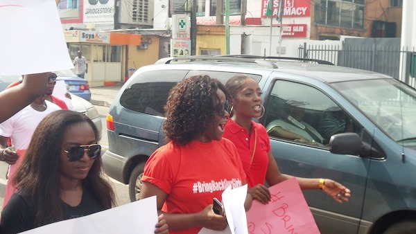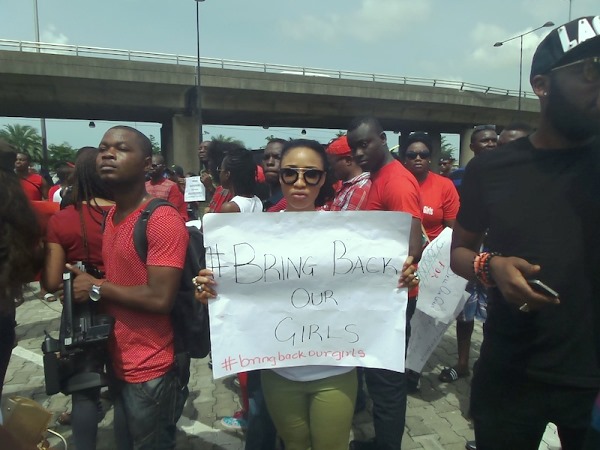 On Saturday, May 10, 2014, a number of Nigerian celebrities and entertainment industry personalities gathered to join the on-going #BringBackOurGirls protest over the April 14 abduction of over 200 girls in Chibok, Borno State.