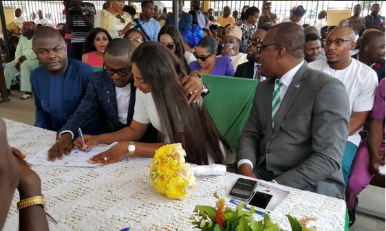 Triple MG boss, Ubi Franklin was at Ikoyi Registry earlier today, October 15, to tie the knot with his actress fiance Lilian Esoro.