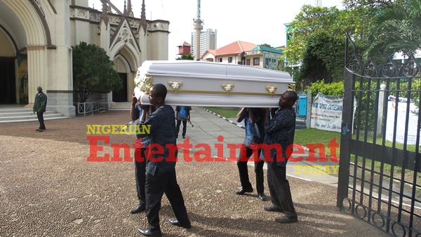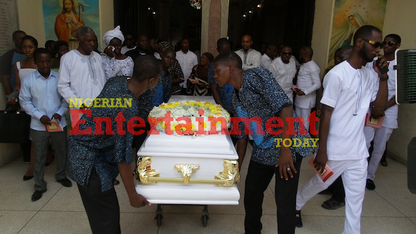 The service, which was held at the Lagos Catholic Cathedral, Lagos Island, started at 10AM and lasted for an hour. It was attended by close friends and family including her mother.