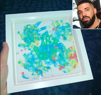 Early this morning, Canadian rapper, Drake, was happy to show off a painting seemingly given to him for Christmas by his 14-month-old son.