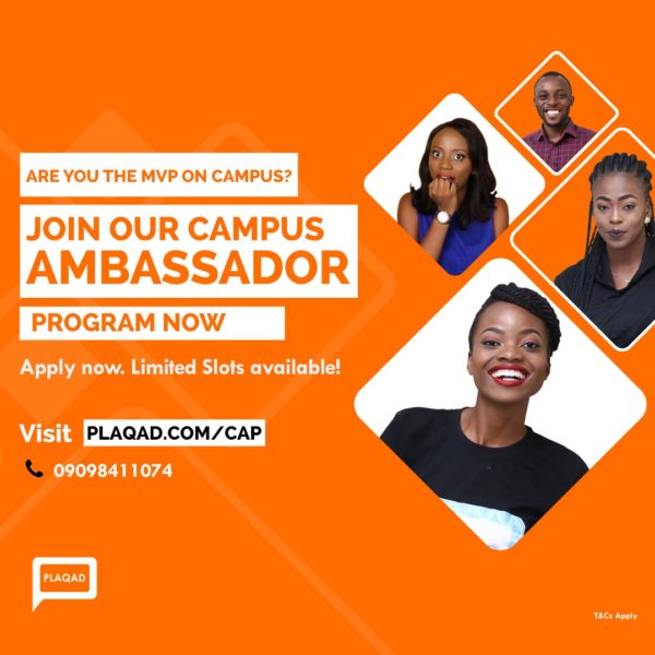 To join the Plaqad Ambassadorship Program, interested students must be a registered, full-time undergraduate student of any tertiary institution in Nigeria.