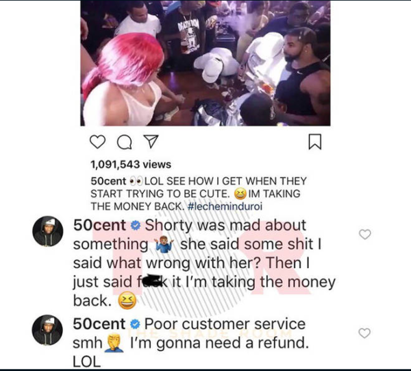 While the woman working with the pole was presumably not amused by his actions, the ‘Get Rich Or Die Tryin’ rapper went on his Instagram to clarify his actions, saying “Shorty was mad about something, She said some shit I said what wrong with her? Then I just said fuck it I’m taking the money back.” 50 Cent also added saying “I’m gonna need a refund.”