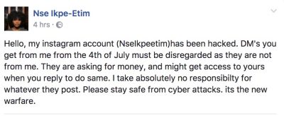 Olori Supergal, Mr 2Kay, Ogbeni Adan, Tunde Ednut and Nse Ikpe Etim among others have been locked out of their Instagram handles. The hackers have been demanding to some sort of ransom before releasing the accounts to the owners.