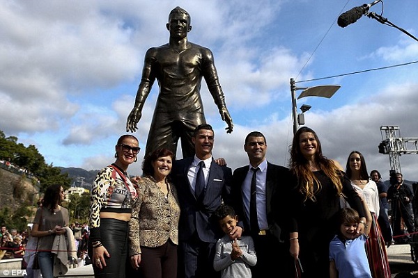 Real Madrid striker, Cristiano Ronaldo has been honoured with a giant statue erected in his birthplace of Madeira Island, Portugal.