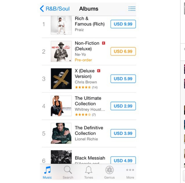 Barely two weeks after the release of his debut double album, Rich and Famous, X3M music act, Praiz finds his album sitting on the number 1 position of the iTunes R&B chart list ahead of established superstars like Neyo, Chris Brown, Whitney Houston and Lionel Richie.