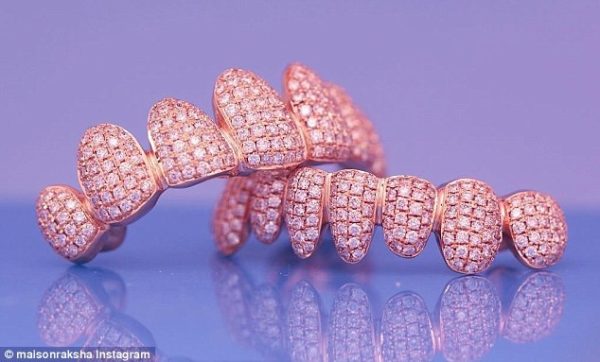According to TMZ, the diamond-encrusted mouthpiece is made of 14K rose gold and contains 500 diamonds and was created for the rapper by a jeweller to the stars, Raksha.