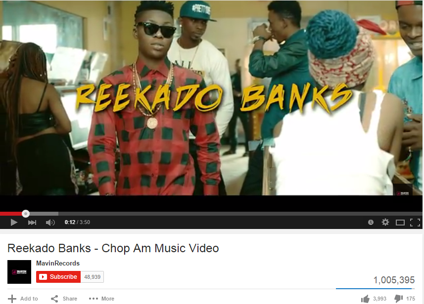 His ‘Chop Am’ music video, released on December 5, 2014, has just crossed the 1m mark on YouTube with a total of 1,005,395 views as at the time of filing this report.