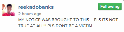 The budding singer however took to his official Instagram account to deny and dissociate himself from the message by saying: ‘My notice was brought to this, Please it’s not true at all. Please don’t be a victim.’