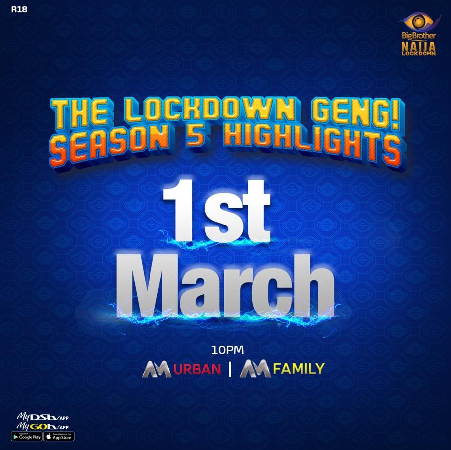 MultiChoice Nigeria is set to air highlights from BBNaija season 5 from Monday, 1 March till Friday, 26 March 2021 on Africa Magic Urban (DStv channel 153) and Africa Magic Family (DStv channel 154 & GOtv channel 2) at 10 pm.